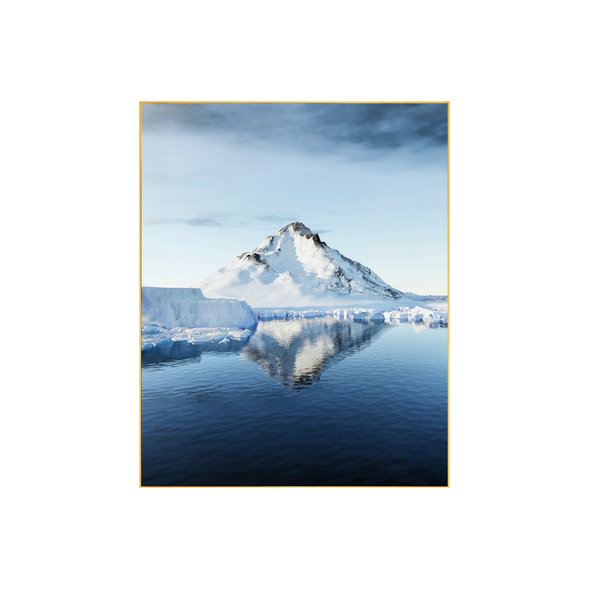 Scenic Landscape: The stunning reflection of the mountains in the water creates a serene and mesmerizing focal point, bringing the beauty of nature indoors.