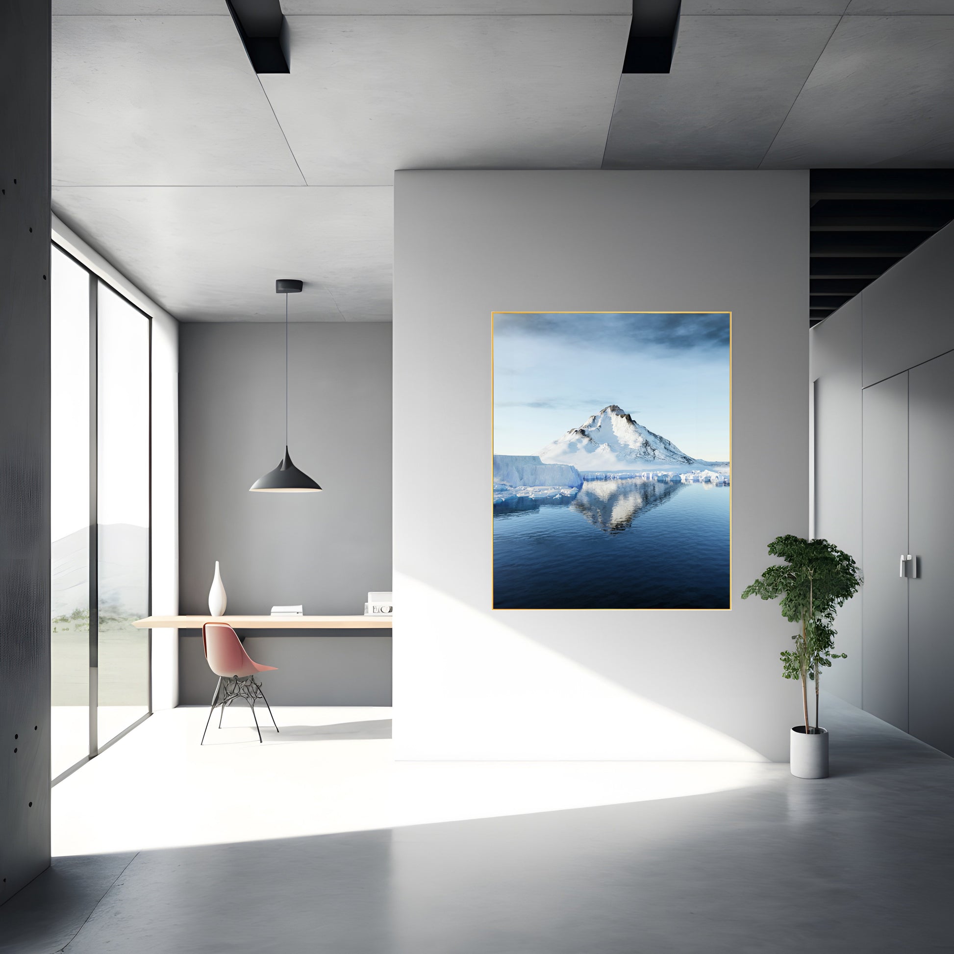Transform your space with the serene beauty of our Mountain Reflection in Water Art Print. This captivating piece of wall decor showcases a breathtaking landscape where majestic mountains perfectly mirror in a calm body of water. The harmony between the rugged peaks and the tranquil reflection brings a sense of peace and natural elegance to any setting, making it an ideal addition to both home and office environments.